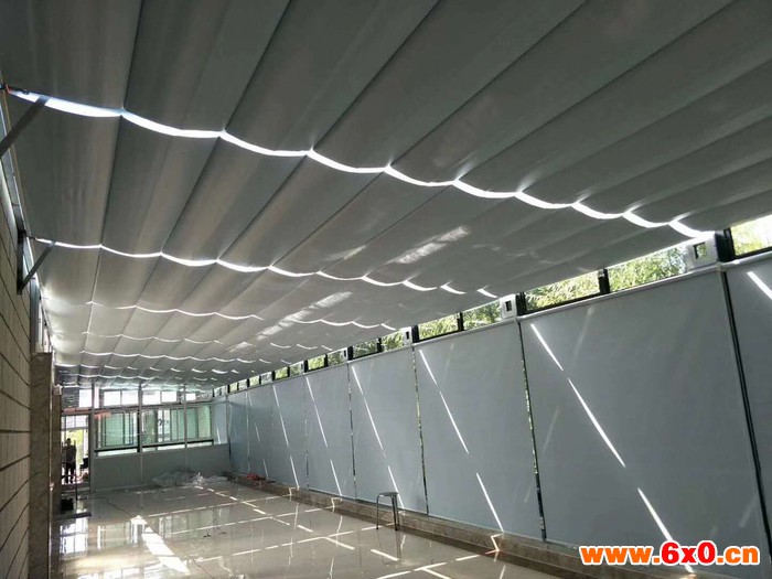 折叠式天棚帘,可用于商场,,学校,、商厦、宾馆、写字楼、等大型采光顶也可用于住宅阳光室、花棚、玻璃阳台等处调节遮阳、保持室内适宜温度,避免强光辐射,采光效应。