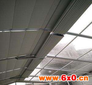 折叠式天棚帘,可用于商场,,学校,、商厦、宾馆、写字楼、等大型采光顶也可用于住宅阳光室、花棚、玻璃阳台等处调节遮阳、保持室内适宜温度,避免强光辐射,采光效应。
