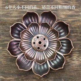 莲花香插,孔洞分明,纹路清晰,6个大小不同的孔,适合不同粗细的香,搭配民艾天下的线香使用,早上熏檀香,工作时熏沉香,休息时熏鹅梨帐中香,驱蚊净化空气熏艾草香。