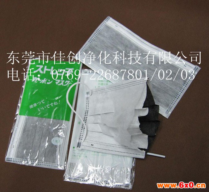 特点:1、采用柔软PP无纺布+活性碳布制成,鼻梁夹的设计可依不同脸型做**舒适的调整,耳带牢固不易掉落。 2、防毒、除臭、滤菌、阻尘等功效。3、特别适用于含有有机气体、酸性挥发物、农药、SO2、Cl2等刺激性气体的场合,防毒、除臭效果显著。4、层数:四层;5、尺寸:17.5CM*9.5CM;6、工艺:点焊,车缝,热合。7、包装:50片/盒;(独立包装1片/袋,50片/盒);40盒/箱(2000个)。