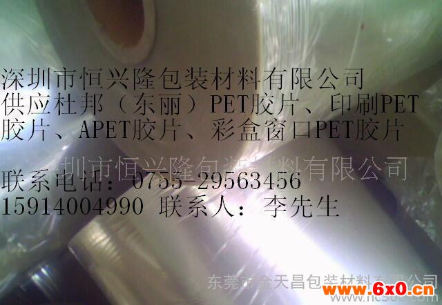 深圳市恒兴隆包装材料有限公司主要产品有:PET胶片、APET胶片、PVC胶片、PP胶片、PETG胶片、GAG胶片等、三层片、透明片、耐寒片、防雾片、防静电片、导电片、滑爽片、颜色片、等各类片材。规格:厚度:0.012-1.5MM、宽度:1-3300MM. 长度可按贵司要求分切。