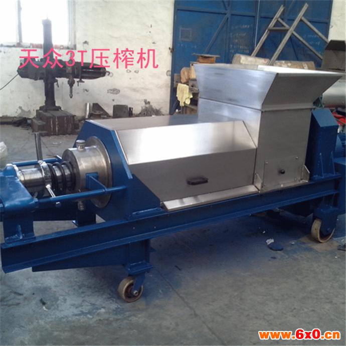 本双螺旋式压榨机工作过程是:输送螺旋将进入料箱的物料推向压榨螺旋,通过压榨螺旋的螺距减小和轴径增大,并在筛壁和锥形体阻力的作用下,使物料所含的液体物(果汁)被挤压出.挤出的液体从筛孔中流出,集中在接汁斗内.压榨后的果渣,经筛筒末端与锥形体之间排出机外,锥形体后部装有弹簧,通过调节弹簧的预紧力和位置,可改变排阻力和出渣口的大小,用来调节压榨的干湿程度. 5、10、20吨/时压榨机为双螺旋转,旋转方向相反,对物料的压榨力大而均匀,出渣口锥形体由液压缸控制,调节油压可改变对物料的施压效果,调整出汁率,本机还可用于其它物料的固液分离,其效果因物料品质不同有一定的差别。本机的进料箱和筛筒及螺旋均采用优质耐酸碱304不锈钢材料制造。