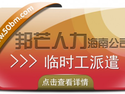 海南临时工派遣就到〖邦芒人力〗,先后3万家企业提供可靠,,优质的人力资源服务解决方案,已在业界赢得了良好的口碑,一地签约全国服务,聚焦业务核心,紧跟市场发展潮流,为客户提供更优质的临时工派遣服务。邦芒人力坚持客户至上的理念,为您提供更适合的产品和服务!大智兴邦,大品传芒!我们期待与更多的企业合作,共同迎接未来的挑战与机遇。想了解更多人力资源服务,请关注海南邦芒人力了解更多。