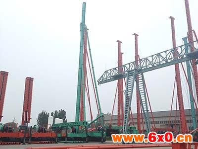 30米长螺旋钻机包括液压步履桩架和钻进系统两部分。桩架采用液压步履式底盘,自动化程度高,可自行行走及360度回转,设有四条液压支腿及一条行走油缸以辅助行走及回转同时增加施工时的整机稳定性,可整机进行转运。立柱为可折叠式箱型立柱,法兰连接方式,立柱采用两块高厚度锰板并且用大型折弯机折弯技术,经两道焊缝焊接而成同时立柱内部每隔60cm加焊四根加强筋固定,增加立柱抗扭抗弯性。立柱由两条变幅液压油缸控制其起降。钻进系统包括动力头与钻具,动力头的输出轴与螺旋钻具为中空式,桩机采用长螺旋成孔,可通过钻杆中心管将混凝土(泥浆)进行泵送混凝土CFG桩施工,即能钻孔成孔一机一次完成,也可用于干法成孔、注浆置换改变钻具后还可采取深层搅拌等多种工法进行施工。