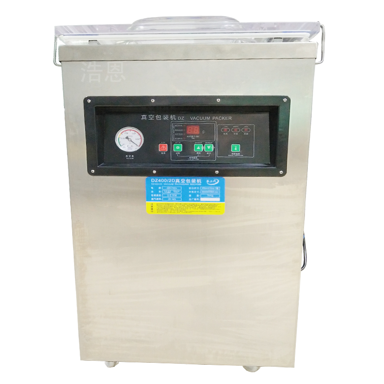 单室真空包装机盖采用全透明有机玻璃,对包装过程一目了然。 单室真空包装机具有抽真空、封口一次完成功能,对不同的包装材料和包装要求,该机设有真空度、热封时间等调整装置,以达到最佳包装效果, 可根据用户的要求,配备换字方便、印字清晰的印字装置,即在封口的同时,在封口线上印上保质期、出厂日期或出厂编号,以符合国家食品标签法的规定;本机具有设计先进、功能齐全、性能稳定可靠、适用范围广、封口强度好、使用维修方便等特点,是目前较理想的真空包装机。