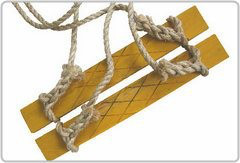 结构特征是木踏板在两侧相应位置切去与固定板相同厚度一块,用固定板将绳索卡住并用木螺钉紧固在木踏板两端的两侧面。彻底解决了绳索与木踏板上滑动、滑脱的问题,具有结构简单,实用可靠的特点。