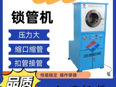 我厂生产的DSG-102/S型锁管机适用于工农业和工程机械液压传动用高压胶管、纤维管、塑料管、复合管总成的扣压加工。采用NC控制,可点动、自动、半自动、延时保压、保压时间可调、多段扣压功能,油缸采用环形结构,可双向进料进行扣压,具有体积小、重量轻、功能多、开模快、易操作、好维修等优点。
