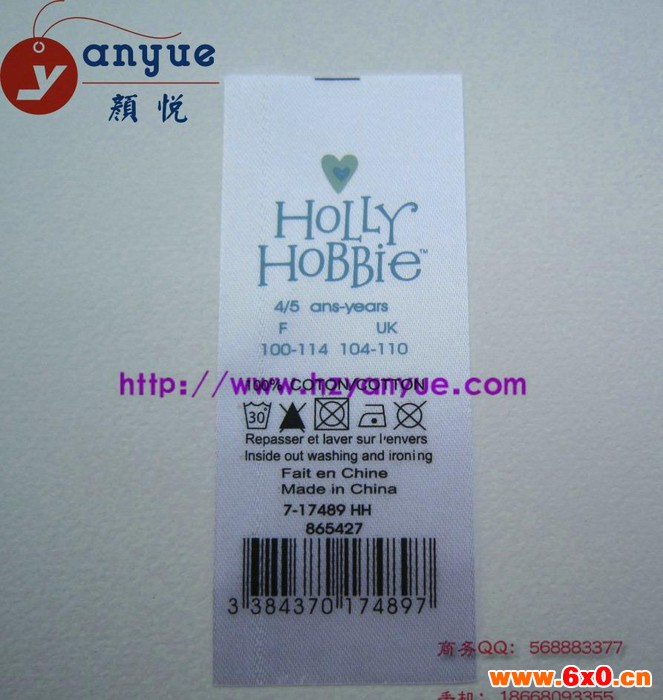杭州颜悦服装辅料有限公司是一家集商标设计、织造、印刷于一体的,专注于研发和生产商标、织唛、印唛、吊牌、彩卡、织带、丝网印、贴纸、胶袋、热转印等一系列辅料的现代化企业。该辅料广泛应用于服装、家纺、箱包、鞋帽、玩具、手袋、领带等产品上。产品已经通过SGS通标标准技术服务有限公司的ISO9001:2008国际质量体系认证和Oeko-Tex Standard 100 认证,产品质量符合安全出口环保标准!