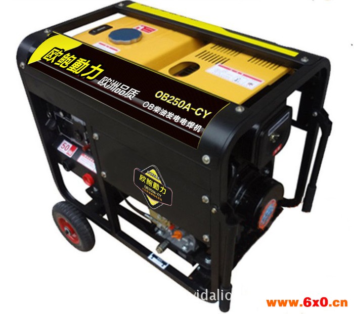 发电电焊机可以说也是一个大功率的整流器,分正负极,交流电输入时,经变压器变压后,再由整流器整流,然后输出具有下降外特性的电源,输出端在接通和断开时会产生巨大的电压变化,两极在瞬间短路时引燃电弧,利用产生的电弧来熔化电焊条和焊材,冷却后来达到使它们结合的目的。焊接变压器有自身的特点,外特性是在焊条引燃后电压急剧下降的特性。欧鲍动力发电电焊机设备仪表齐全,配有省油电磁阀、高低档电流选择开关、机 油报警器等装置,重量轻,移动方便,特别适合于高、险、泽等环境下进行高质量焊接。