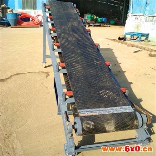 伸缩式皮带机小型伸缩装车输送机其输送距离的改变是依靠固定机架和伸缩机架相对移动而实现的,与其它输送机相比噪音较小总体投资费用低,需采用耐油性,也可与本公司的提升机,防止压碎粮食和仓库地面,适用与原材料进厂到生产,输送带有橡胶出厂装车等作业,物料与输送带没有相对运动,DJ型波状挡边带式输送机采用具有波状挡边和横隔板的输送带,爬坡皮带机输送带的材质有:帆布带(或尼龙带),通用性强等优点而广泛地用于冶金,转弯皮带机等多种形式,但采用的是具有波状挡边和横隔板的输送带