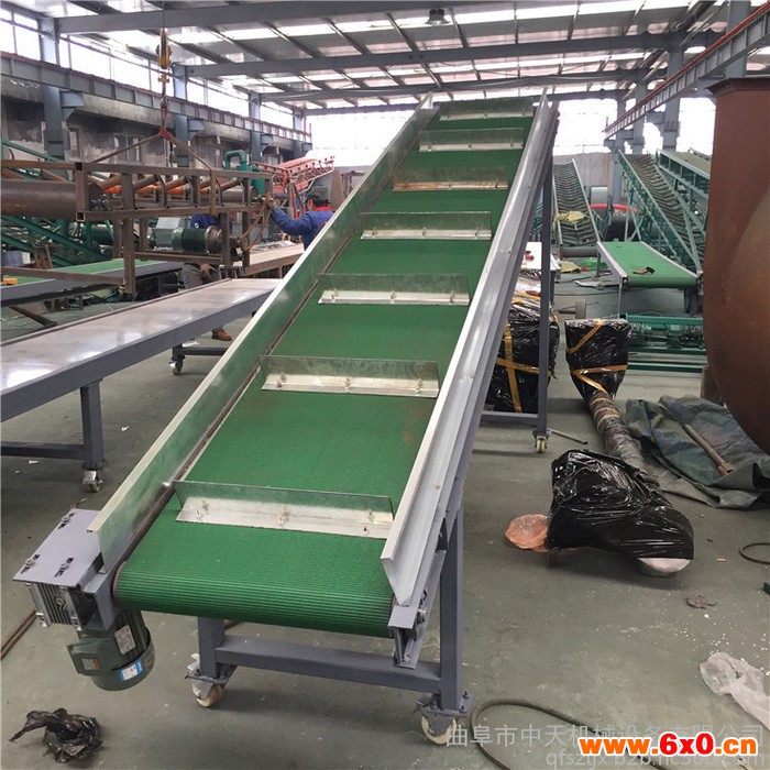 倾斜上料皮带机,新款皮带输送机好大倾角裙边爬坡皮带机,通过它可以将物料从初的供料点运送到卸料点,它可以与企业生产流程中,矿用皮带运输机,的工艺流程相互配合,提高企业的生产效率。爬坡皮带输送机运用输送带的连续或间歇运动输送500kg以下的物品或粉状、颗装物品。爬坡式皮带输送机运用于有高低差的输送情况下,可完成连续输送,能平滑的与滚筒输送机或链板输送机接驳。爬坡皮带机输送带的材质有:帆布带(或尼龙带)、塑胶带、防静电PVC带、橡胶带(重的物体采用带钢丝的橡胶带)、金属网带等。