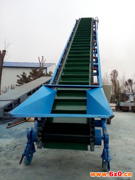 伸缩式皮带机大倾角波状挡边带式上料机两侧挡边之间的带体中部可根据需要加上按一定间距布置的横隔板,以实现大倾角输送,具有很高的连接强度波状挡边带式输送机采用的是具有波状挡边和横隔板的输送带,温度调节范围:0~200℃,输送量可从1立方米/小时到6000立方米/小时,硫化压力:1~1.8 Mpa,大倾角波状挡边输送带品种:,垂直和变角方向输送各种散装物料计时调节范围:0~99mins;,单式下托辊类似普通带式输送机的平形下托辊,用于带宽≤800 mm的输送机;复式下托辊和托带轮由单式下托辊加支撑在输送带两侧空边上的托带辊或托带轮组成,用于带宽>800 mm的输送机,倾角等基本参数外,还决定于波状挡边输送带的型式及横隔板型式,加热板表面温度均匀,并能缩短运输距离