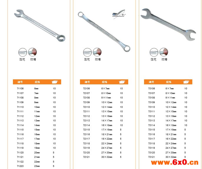 本公司供应五金扳手手动工具,品牌台湾7福,型号73106。参数为:规格* 6*7到30*32,材质* CR-V,表面处理* 多种供选。质量保证,欢迎咨询洽谈。