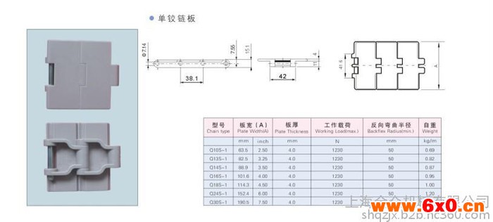链板宽度:63.5、82.5、88.9、101.6、114.3、152.4、190.5、254.0、304.8mm。