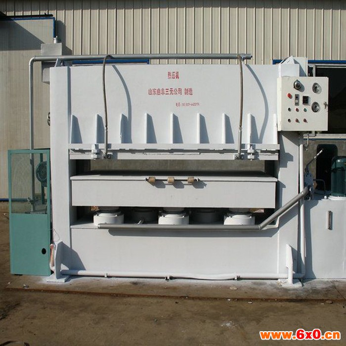 600吨热压贴面机技术参数: 工作压力:600吨 油缸数量:6只 加热功率:30KW 油缸直径:φ280 外形尺寸:5000mm(长)×1700mm(宽) ×2400mm(高) 加热方式:热油循环加热 电器结构:模拟电路 工作台尺寸:2500mm(长)×1300mm(宽) 总重量:12.9吨 价格:13.8万(不含税)900吨热压贴面机技术参数: 工作压力:900吨 油缸数量:6只 加热功率:30KW 油缸直径:φ280 外形尺寸:5000mm(长)×1800mm(宽) ×2550mm(高) 加热方式:热油循环加热 电器结构:模拟电路 工作台尺寸:2500mm(长)×1300mm(宽) 总重量:15.5吨 价格:15.8万(不含税)