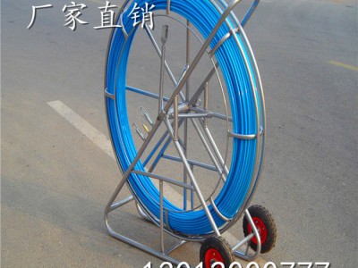 穿孔器由扁铁或圆管制成的小车架固定不仅使穿孔器规律的盘在架子中在施工方面也提高了效率。玻璃钢穿孔器使用时首先将其覆杆由引轮引出然后与相应的金属头连接穿入管路内。穿管器用于清理时引导头带动清理工具可以清理管道用于布放电缆时可先将钢丝或铁线带入尔后用钢丝或铁线牵引电缆入管。玻璃钢穿孔器具有省时、省力、提高工效等优点而且耐腐蚀、弹性好使用寿命长。