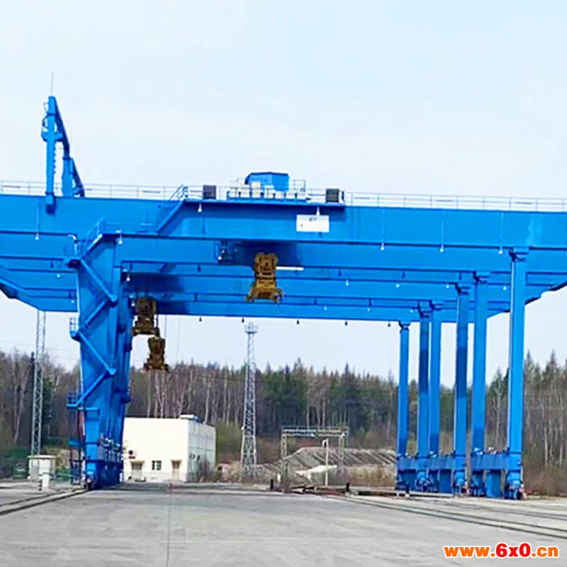 集装箱龙门吊是特种设备,具有危险较高的特点,因此,在起重机的安装中,安全工作尤其重要,集装箱龙门吊大多是结构庞大、机构复杂的机械设备,通常很难整体运输,往往是将设备分体运输后到使用场地整体组装,集装箱龙门吊是在使用方场地或建筑物的轨道上运行,因此,对于其运行轨道或安装基础以及对起重机本身是否能够相互配合完好都有着严格的要求,但集装箱龙门吊安全装置完善且安装正确,故障率也是很低的。 轨道式集装箱龙门吊是一种常用的物流设备,它主要用于装卸集装箱。集装箱龙门吊有两种主要类型:轨道式和非轨道式。轨道式集装箱龙门吊的主要优势在于其较高的生产效率。由于集装箱可以直接在轨道上进行装卸,因此生产效率比非轨道式集装箱龙门吊要高出很多。此外,轨道式集装箱龙门吊还具有较好的耐久,能够承受更高的使用寿命。然而,轨道式集装箱龙门吊也存在一些不利因素。由于其依赖于固定的轨道,因此在安装和使用上会比较复杂。此外,由于其生产效率相对较高,因此成本也相对较高。集装箱龙门吊可堆放高3~4层、宽6排的集装箱的堆场,一般用轮胎式,也有用有轨式的。集装箱龙门吊与集装箱跨车相比,它的跨度和门架两侧的高度都较大。为适应港口码头的运输需要,这种起重机的工作级别较高。起升速度为8~10米/分;跨度根据需要跨越的集装箱排数来决定。