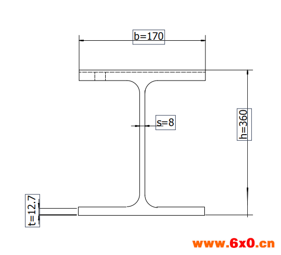 欧标普通工字钢、欧标轻型工字钢翼缘是变截面靠腹板部厚,外部薄; H型钢:HW HM HN HEA HEB HEM 等工字钢的翼缘是等截面