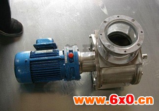 带有压力平衡装置,可用在正压、负压输送系统。当上部料仓的物料靠自重落下充填在叶片之间的空隙中,随叶片的旋转而在下部卸出,因此,星型卸料器可以定量而连续地卸料。星型卸料器常用在气力输出系统中,对于压力输出系统或负压输出系统,星型卸料器可以均匀,连续地向输料管供料,以气力输出管内的气、固体比较稳定,从而使气力输送能正常工作,同时,又能将卸料器的上、下部气压隔断而起到锁气作用。因此,星型卸料器是气力输送系统中常用的重要部件。