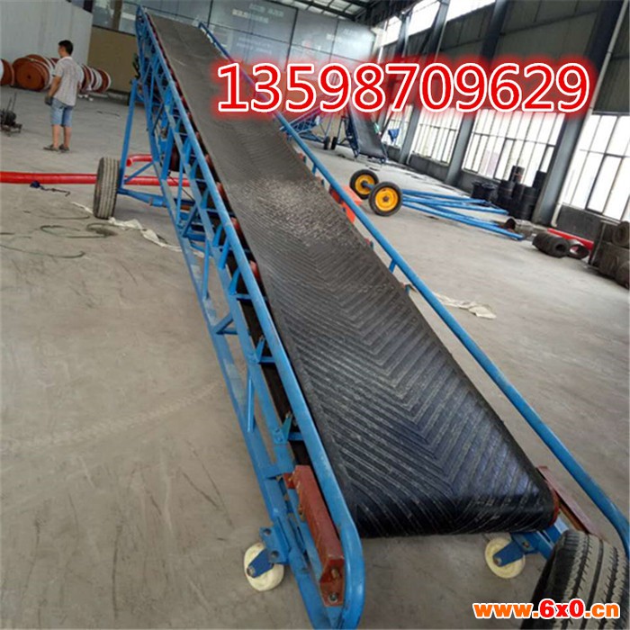 移动升降皮带输送机 装卸输送机俗称传送带,可以电动升降,用于输送散粮玉米,小麦,米厂原粮,大豆,水稻,高粱,葵花籽等粮食大车装车发货,装包,入粮库等。带宽:B500,B600,B650,B800,B1000mm等;长度:4米,5米,6米,8米,10米,12米,15米等。该机可以散包两用,是一机多用型,具有移动方便,操作简单,使用安全,维修量小,价格实惠。配件输送带、传送带、托辊、立辊、挡辊等现货供应