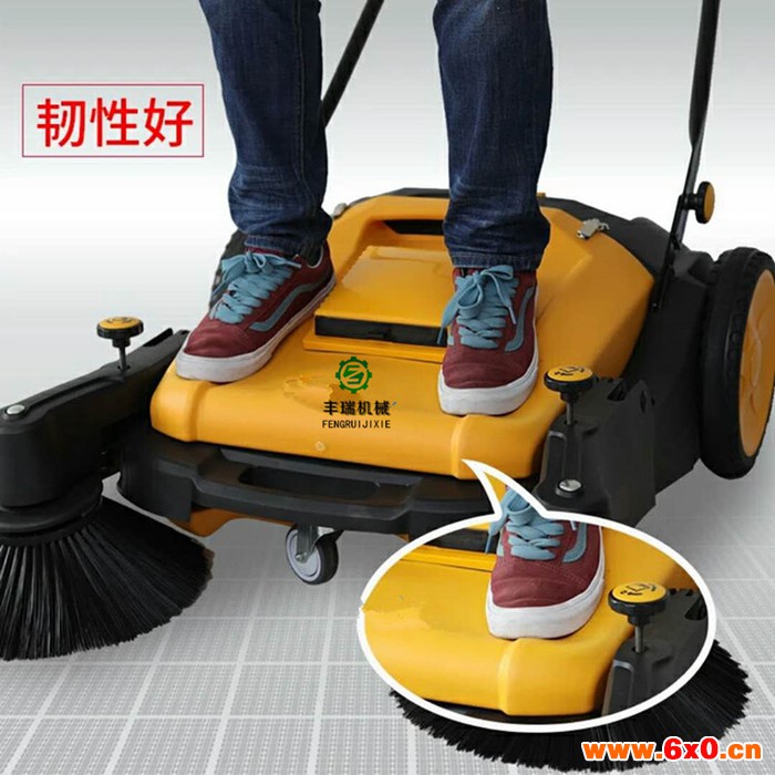 SD920手推式无动力扫地机,产品设计精巧、技术独特,整机不需任何机电动力,只需人力推着步行便可将垃圾轻松地回收到垃圾箱;前、后滚刷可根据地面以及垃圾情况,方便的进行高度调整,使之达到低的损耗和