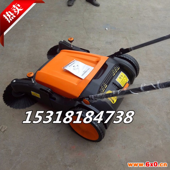 SD920手推式无动力扫地机,产品设计精巧、技术独特,整机不需任何机电动力,只需人力推着步行便可将垃圾轻松地回收到垃圾箱;前、后滚刷可根据地面以及垃圾情况,方便的进行高度调整,使之达到低的损耗和