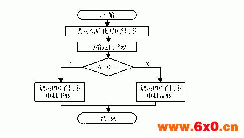 当系统投入工作时,主程序的任务就是根据PLC把随机读到的计数值与标准值相比较,而得到的偏差值,调节电机正转或反转。程序流程图如图6所示。