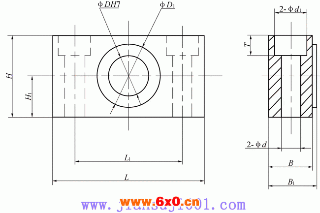 | 型号 | D | D1 | H | H1 | L | L1 | B | B1 | d | d1 | T |