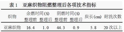 另外,由于亚麻织物在阻燃整理过程中要经过多次洗涤,造成“飞边”,织物尺寸有所改变,影响到“炭长”等技术指标的测定,从而造成误差,这需要制订更加合理的工艺,尽量避免上述情况的发生。