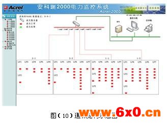系统通讯结构示意图,主要显示系统的组网结构,系统采用分层分布式结构,同时监测间隔层设备的通信状态。红色表示通讯正常,绿色表示通讯故障。见图(10)。