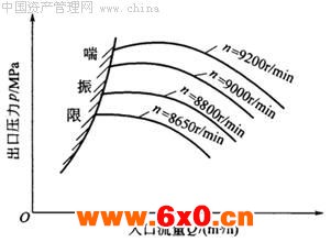 计算,一般都比较低,通常为1~30Hz。 (2)压缩机在稳定工况下运行时,其出口压力和进口流量变化不大,所测得的数据在平均值附近波动,幅度很小。当接近或进人喘振工况时,出口压力和进口流量的变化都很大,会发生周期性大幅度的脉动,有时甚至会出现气体从压缩机进口倒流的现象。 (3)压缩机在稳定运转时,其噪声较小且是连续性的。当接近喘振工况时,由于整个系统产生气流周期性的振荡,因而在气流管道中,气流发出的噪声也时高时低,产生周期性变化。当进入喘振工况时,噪声增剧,甚至有爆声出现。