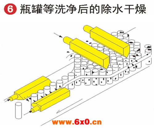 工业风刀在工业领域可以实现大量吹风除水、吹风除尘等应用,如吹除钢板,铝合金型材等平面上的灰尘、水分,吹除饮料瓶、包装罐等瓶体表面的水分,吹除产品表面的杂质灰尘,残液,外包装上的水分,以及传送带清理等。也适合于吹气、除水、除尘、吹水分除干燥,吹风冷却等等。