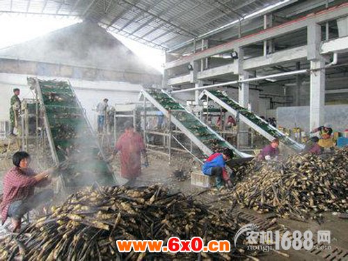 该联合剥笋机由临安市蓉华食品有限公司经多年研制生产,能同时完成多根竹笋笋壳剥离工作,具有自动化程度高、生产连续性好、结构简单、操作方便特点。联合剥笋机由输送机构、振动机构及剥笋机构等组成。
