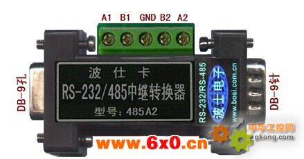 波仕第2代RS-232/RS-485转换器兼容48的功能,无需外接电源,实现RS-232/RS-485转换,通信距离延长至2×1.2Km以上(9600bps时)。482特别适合于RS-485多机通信时,将RS-232口转换为相互中继的2个RS-485口,使用482转换器组的RS-485网不限节点数、不限距离!