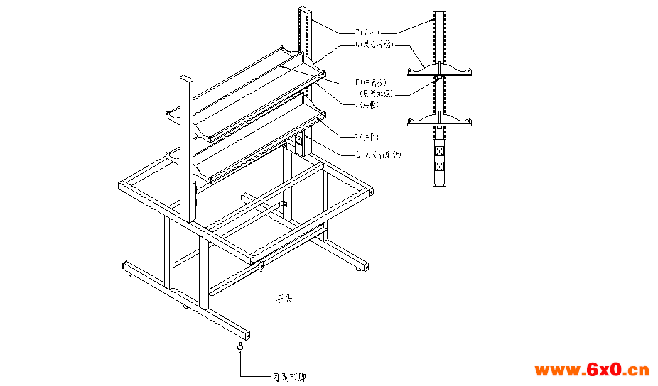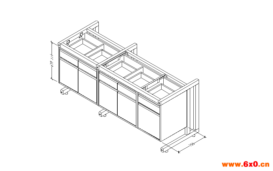 所以,一般C(H)-frame结构的试验台分为两种,一种是吊木(钢架+木制柜体),一种是吊钢(钢架+钢制柜体),试验台一般的高度为850mm,所以我们的柜体一般高度为600mm。以下为一份C-frame钢木结构的示意图。