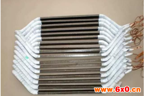 电机高压线圈上的绝缘带分为高阻带和低阻带,高阻带采用浸半导体高阻漆的无碱玻璃纤维带制成,用于线棒端部部分。低阻带主要有含铁石棉带和浸半导体低阻漆的无碱璃纤维带。铁质石棉带由石棉纤维纱编织而成;低阻带用于线棒线槽部分。