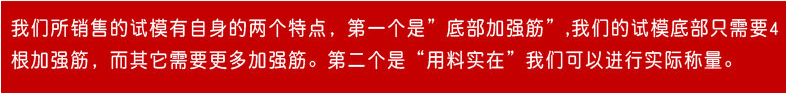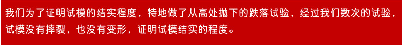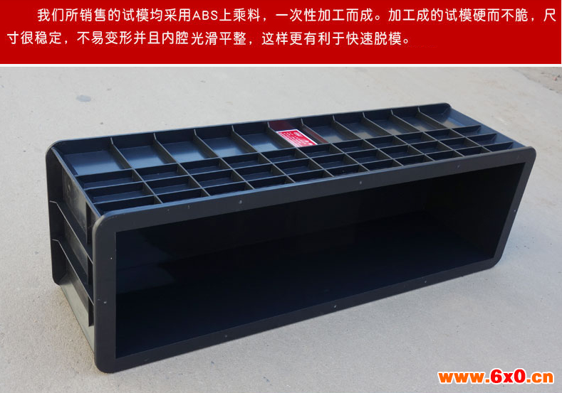 本厂生产的塑料试模是用大型试模成型设备一次成型生产而成,具有质量优良、规格齐全、外观好看、价格低廉、使用方便、不易变形等特点,是公路、铁路、水利、建筑、施工单位、大专院校等必备器具。