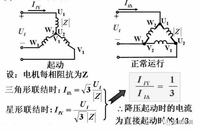 这是一种降压启动方式,Y一△启动,是指启动时电动机绕组接成星形,启动结束进入运行状态后,电动机绕组接成三角形。