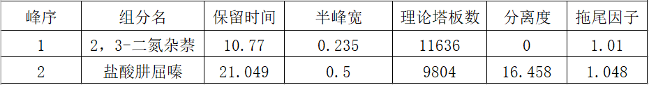 Ultimate® LP-CN(4.6*250mm,5μm),在此色谱条件下盐酸肼屈嗪,分离度16,可以达到检测要求。