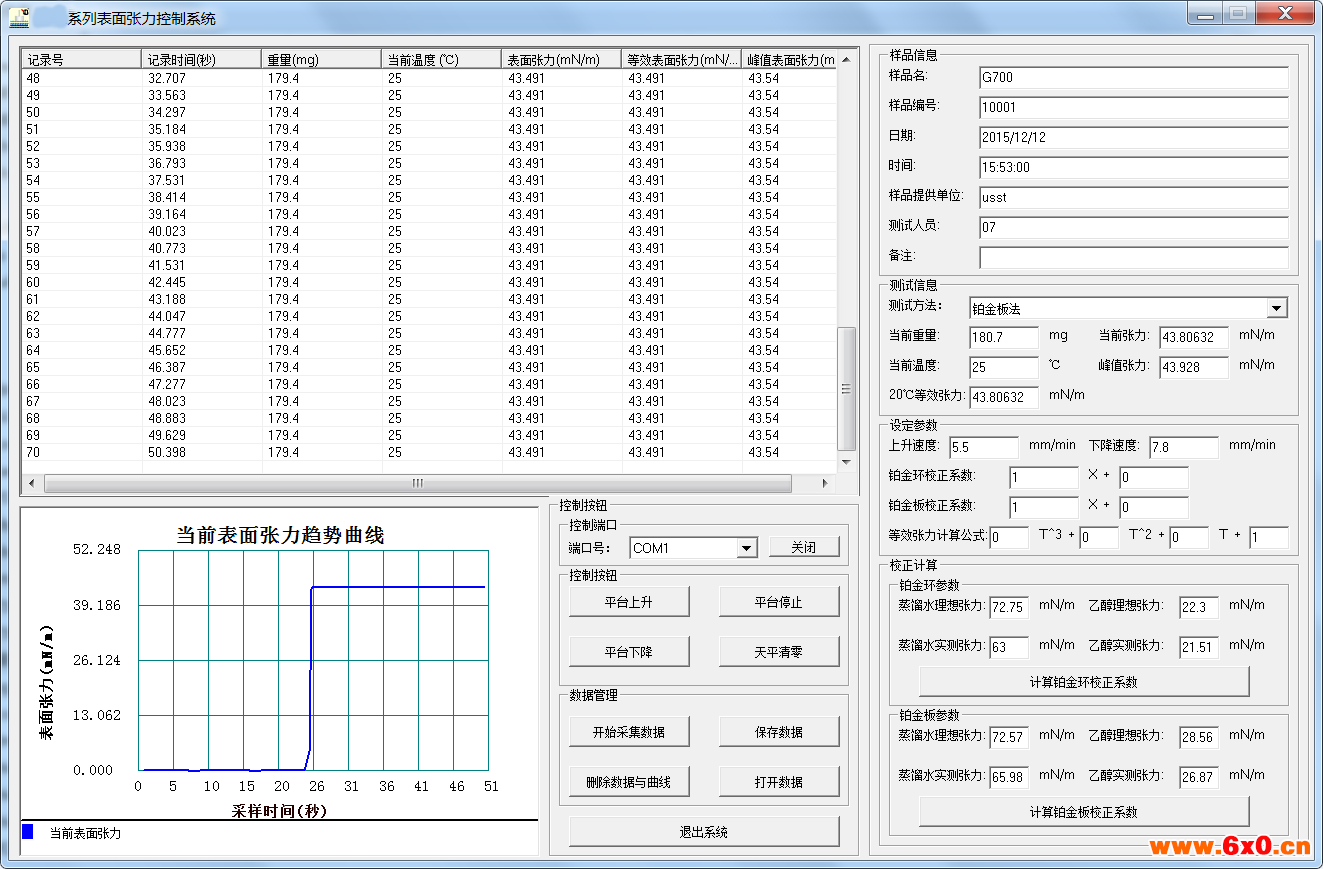 4:操作全自动化,消除一切人为误差。自动锁定液体界面,显示张力曲线,自动锁定峰值张力,无需任何换算,直接屏幕显示张力值。自动停止测量,无需人工操作,减少人工误差。