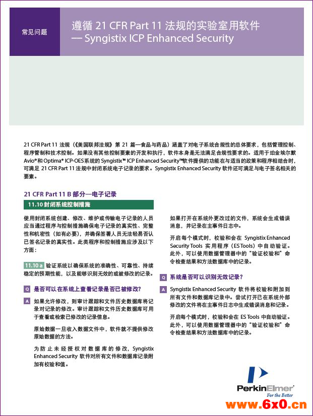 珀金埃尔默以满足21 CFR Part 11 法规中封闭系统电子记录与电子签名相关要素的Syngistix Enhanced Security 软件为例,为您全方位解析一款合规的实验室软件,编制了《常见问题问答合集》