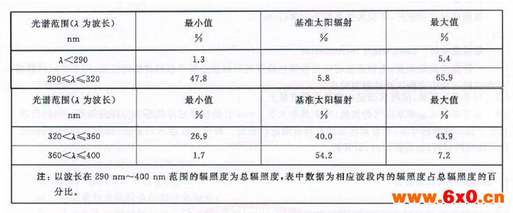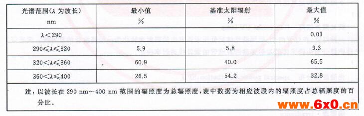 b)GB/T 16422.3中的UVB灯管,辐照度峰值对应313 nm。这种灯管的典型光谱能量分布见 表2。