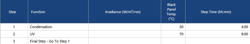 在紫外光照暴露期间,通过向试验箱供应热空气,将样品表面温度维持在设定温度±3℃以内。在冷凝暴露期间,通过加热水盘里的水,将样品表面温度维持在设定温度土3℃以内。紫外光照和冷凝循环的温度控制彼此互不影响。