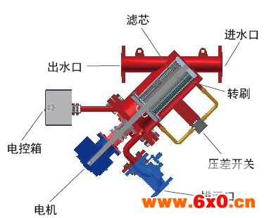 全自动过滤机(Y型刷式自清洗过滤器)控制方式分压差控制、定时控制、手动控制,三种控制方式互锁。
