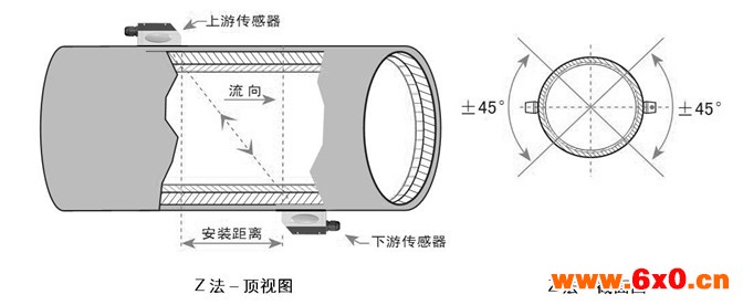 Z法可测管径范围为100mm至6000mm。现场实际安装时,建议200mm以上的管道都要选用Z法(这样测得的信号最大)。