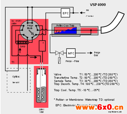 VSP 4000可用于固体、液体或混合型样品中挥发性和半挥发性物质的直接吹扫,样品瓶体积20ml。该系统可运行如下两种模式: