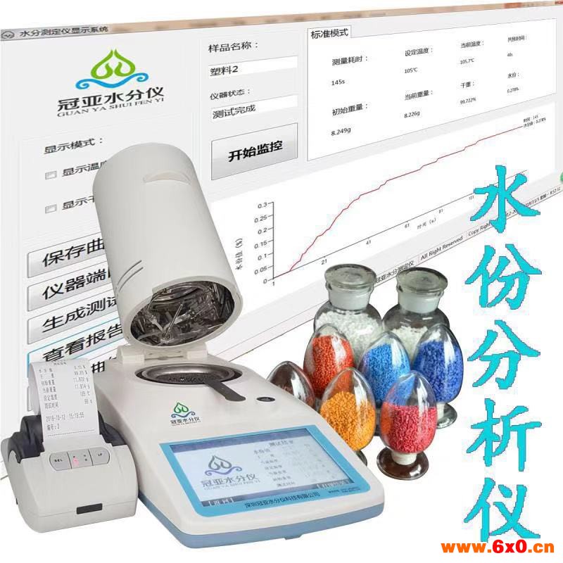 《冠亚牌》WL-20系列石墨粉快速水分测量仪是由深圳市冠亚公司研发并生产,WL系列型在继承了冠亚以往设备优异性能的同时,更多是集合了现代化的科技亮点,实现了高智能化的设计理念。在设备显示部分采用了高分辨率的7寸液晶大屏幕,可直接通过全屏触控的模式在液晶屏上直接进行测试参数、条件设定等,实现了人机一体化的操作模式,改变了一往水份仪设备不能实时观看数据过程变化的弊端,分析完毕后,仪器屏幕自动锁定终的数据。无需人员看护、维护实验过程。操作人员不需要进行培训,看说明书或者产品操作流程即可全面掌握并操作,同时根据说明书上的提示,即可简单处理设备工作中出现的各类现象。
