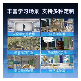 所有场景均基于真实事故案例还原,细节贴合行业作业规范(如脚手架间距、防护栏高度、电力设施安全距离等),用户可通过触摸控制台自主选择体验内容,满足不同行业的培训需求。