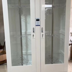 微电脑数显储存柜产品介绍A:数显储存柜分为单门储存柜DX-SX-I和双门储存柜DX-SX-II,硬镜储存柜DX-SXY-I;(型命名的含义DX为迪新品牌,SX为数显简称,I为单门,II为双门,Y为硬镜简称)B:软镜储存柜规格参数:单门储存柜规格为630*535*2080mm(长*宽*高);双门储存柜规格为1150*535*2080mm(长*宽*高),外部采用多工艺处理的钢塑材料,内胆采用优质高分子材料,的开模整体吸塑成型,无缝隙,不藏污垢;易清洗、表面细菌残留低,使用方便、安全、快捷,对内镜无磨损。外壳与内胆融为一体,柜内空间密闭效果优异,外观简洁实用,美观大方。软镜柜内部设有上中下三层内镜悬挂系统,全方位的定位内镜,防止相互碰撞。内设智能化自动控制紫外线,循环风的消毒程序,消毒工作自动累时,另有照明、通风、循环干燥、温度湿度显示等功能。单门可储存4-6条内镜,双门可储存6-12条内镜。C:硬镜储存柜规格参数:规格为:630*535*2080mm(长*宽*高)外部采用多工艺处理的钢塑材料,与软镜的不同是硬镜柜没有高分子内胆。